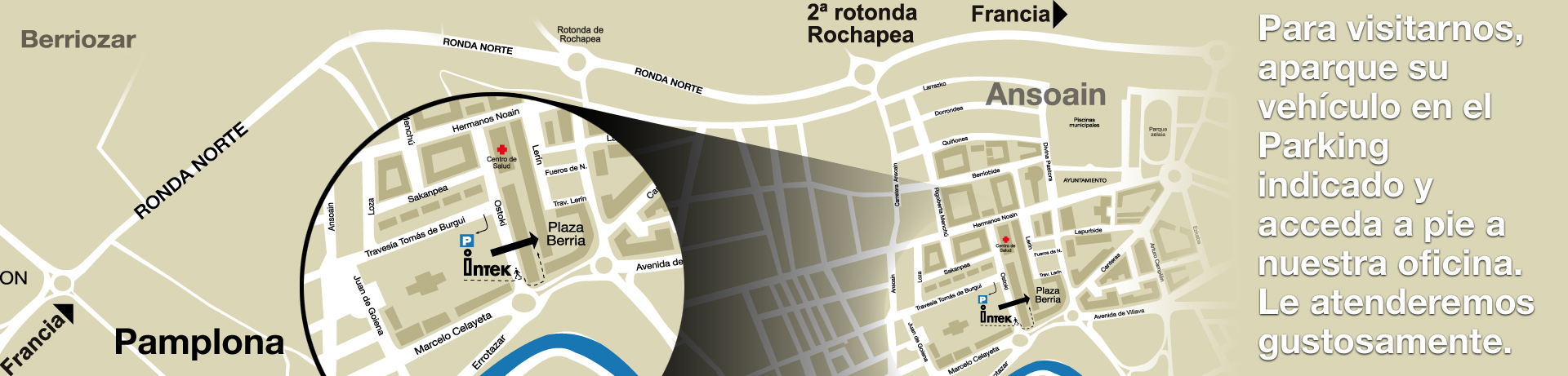 Plaza Berria 7, trasera 31013 Ansoáin · Navarra Teléfono: 948 382 562 Email: info@intekdm.com Coordenadas GPS Parking: 42.831241,-1.641797 Oficina: 42.831324,-1.640794